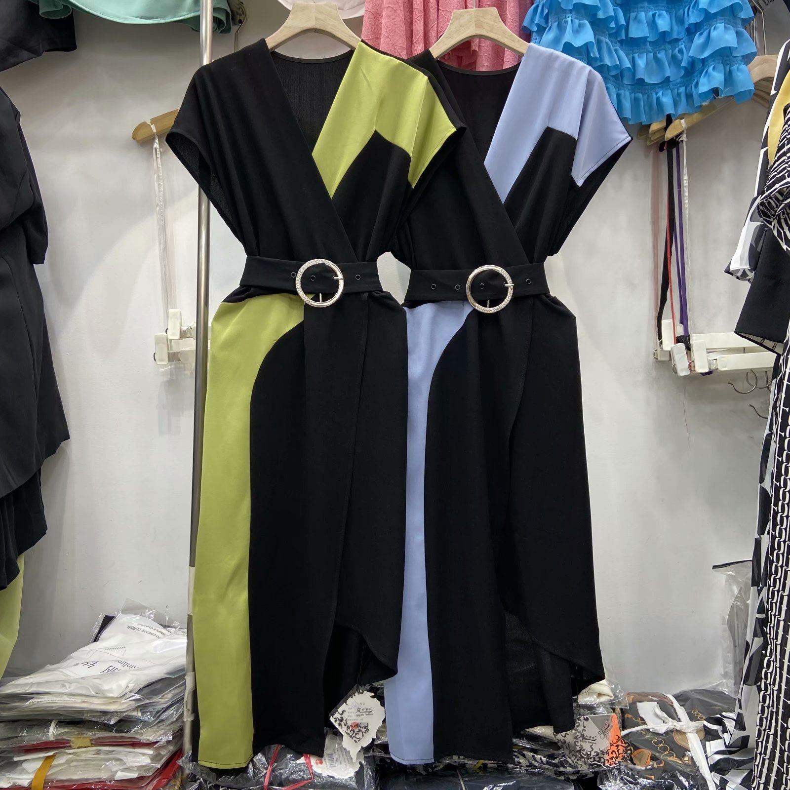凤和服饰2021夏法式小众设计感时尚V领女神范系带显瘦拼色连衣裙热门设计联盟服务商