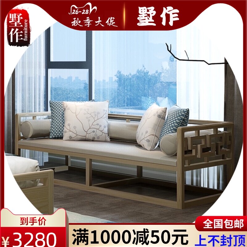 新中式沙发 现代客厅禅意布艺沙发组合样板房会所家具 全实木沙发热门设计联盟服务商