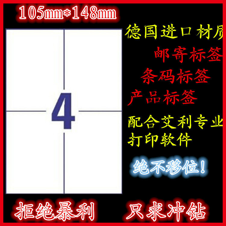 款进口可打印A4方形分切4格自粘性不干胶标签贴纸包邮还送软件热门设计联盟服务商