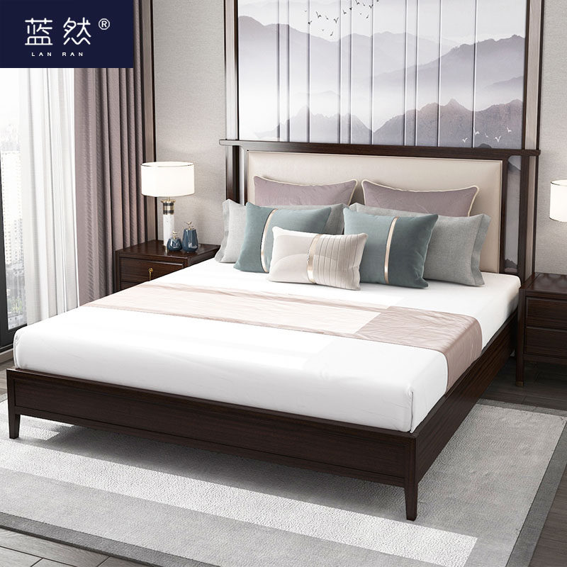 蓝然新中式1.8米1.5米实木卧室双人床婚床星级酒店样板房家具定制热门设计联盟服务商