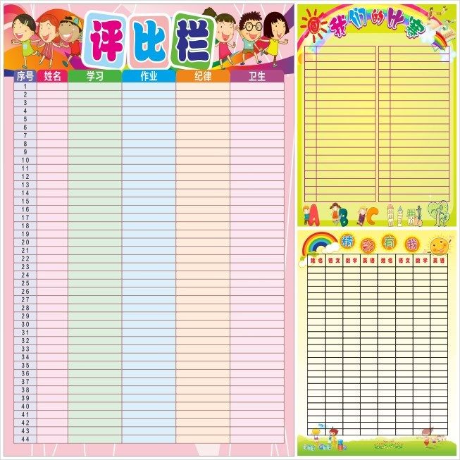 班级评比栏儿童自律表生活记录表家庭儿童奖罚自律表家用 小学生热门设计联盟服务商