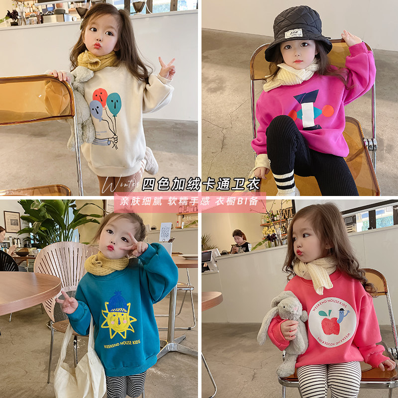 2021女童装秋冬装新款四色卡通加绒加厚韩版儿童卫衣宝宝洋气上衣热门设计联盟服务商