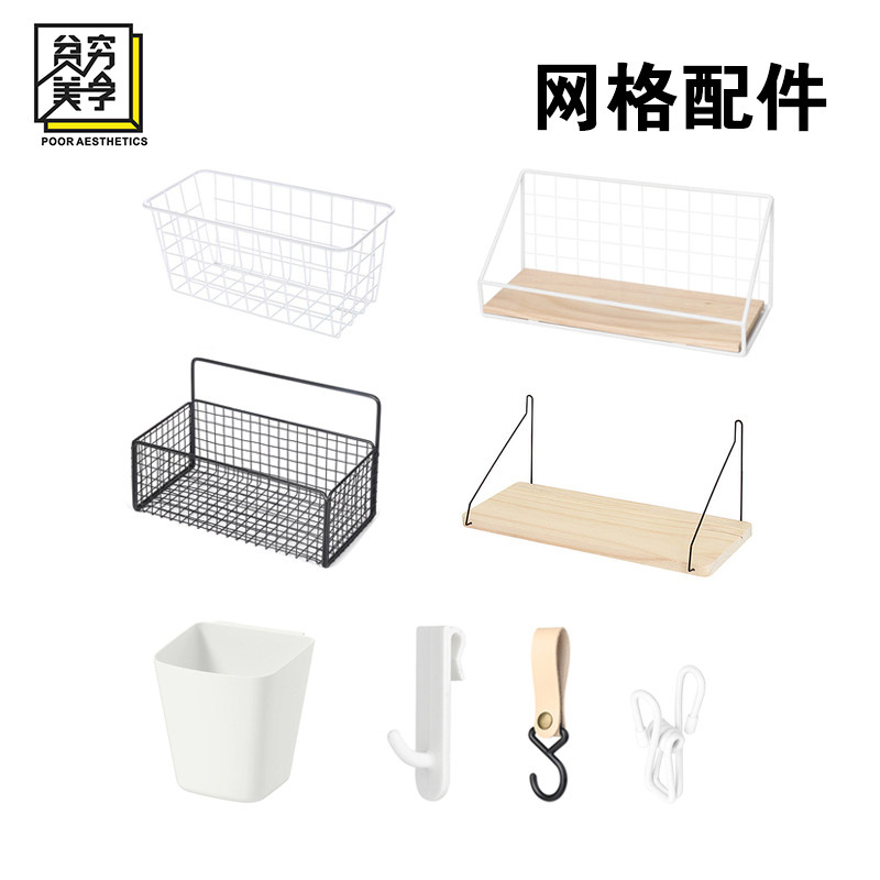 贫穷美学网格屏风配件货架侧网铁艺挂钩收纳篮装饰配件照片墙夹子热门设计联盟服务商