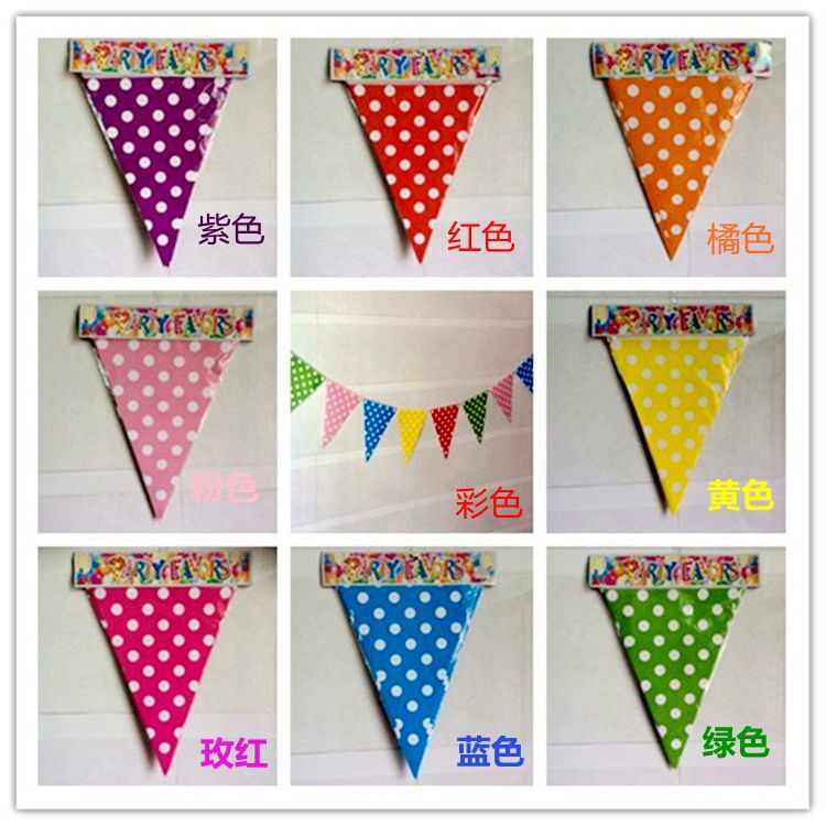 生日派对装扮布置装饰波点三角旗横幅生日字母拉条拉旗彩旗彩带花热门设计联盟服务商