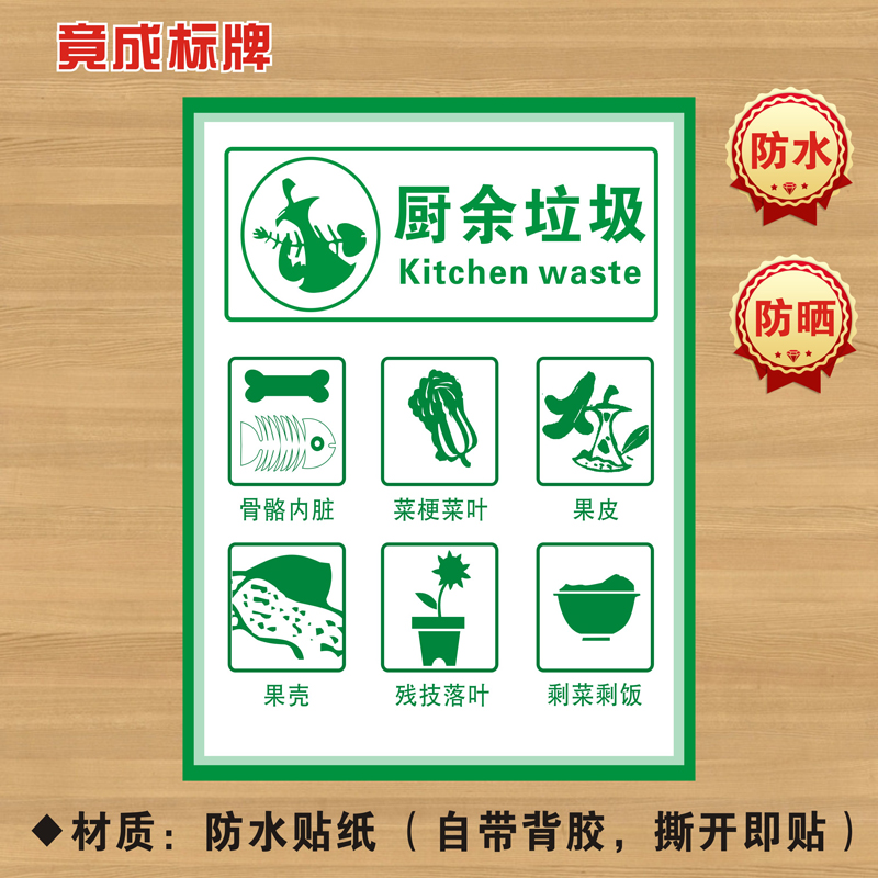 厨余垃圾垃圾分类贴纸标识牌不可回收厨余干湿有害其他标志LJ047热门设计联盟服务商