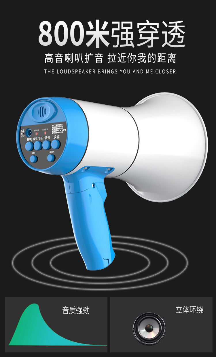 新品35W大功率锂电池喇叭手持扩音喊话器宣传叫卖大声公蓝牙插卡热门设计联盟服务商