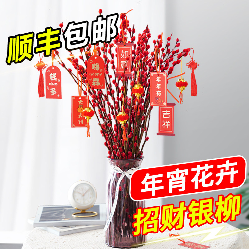 银柳真花鲜枝红色银柳干花diy盆插水室内装饰新年宵花招财开客厅热门设计联盟服务商