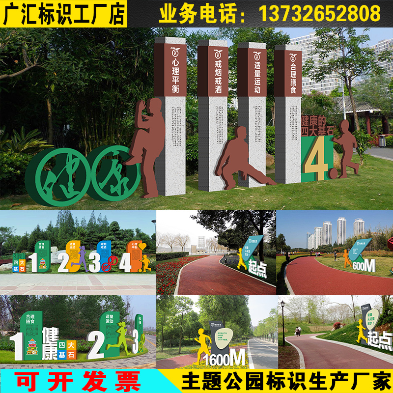 户外健康步道起点终点宣传牌公园运动人物造型文明城市广告指示牌热门设计联盟服务商