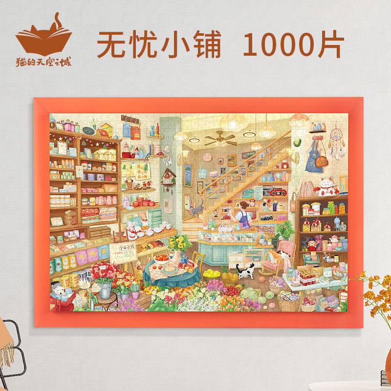 猫的天空之城1000片拼图成年人无忧小铺益智减压卡通解压纸制玩具热门设计联盟服务商