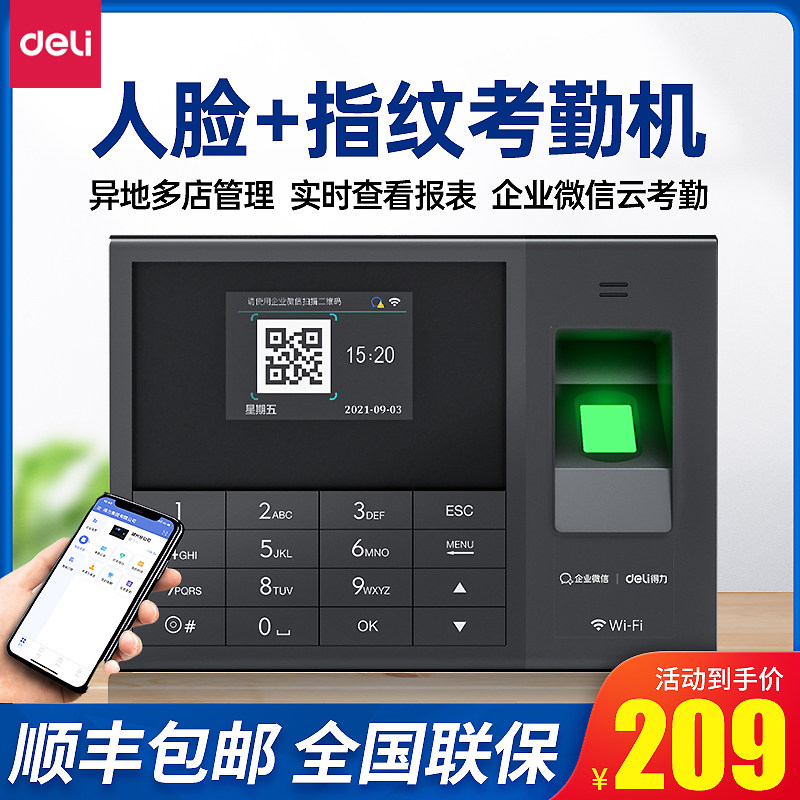 得力企业微信云考勤机人脸指纹密码一体识别考勤机支持云报表异地手机APP签到打卡员工管理自动报表WX3765热门设计联盟服务商