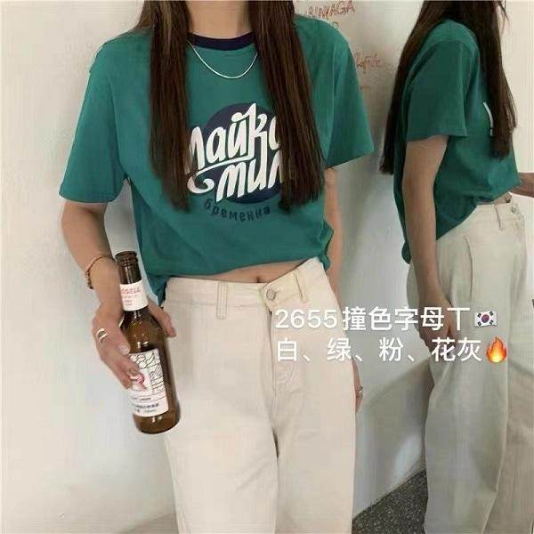 抖音超凡服饰休闲短袖T恤0038夏季新款欧货设计感小众印花撞色t恤热门设计联盟服务商