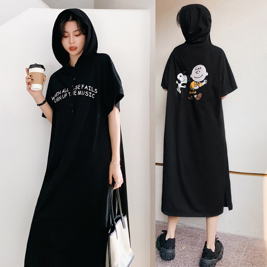 春夏装胖人服饰女纯棉卫衣裙女带帽长款过膝显瘦T恤连衣裙遮肚群热门设计联盟服务商