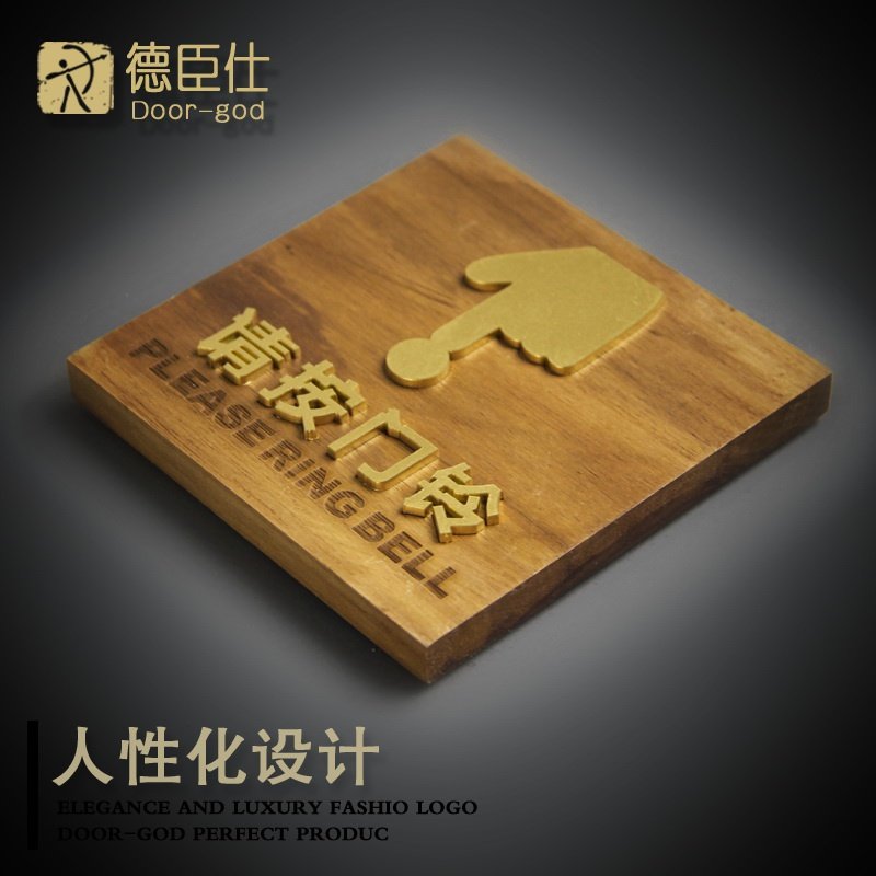 创意请按门铃提示贴提示牌家用小号手指按钮图标木质门牌定制广。热门设计联盟服务商