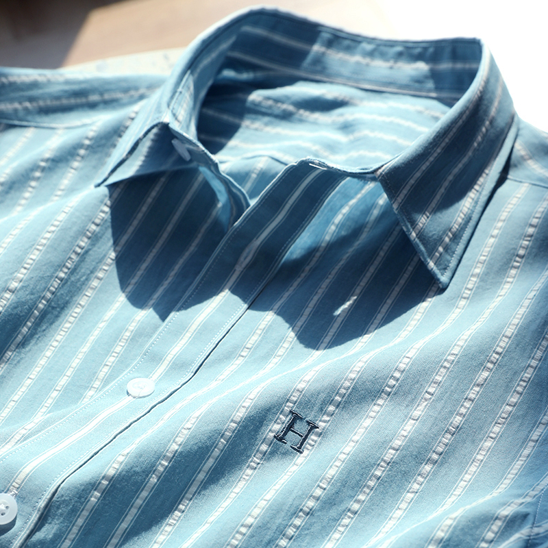 鲁泰!!和其他不一样!男士春夏条纹皱感全棉泡泡纱商务休闲衬衫热门设计联盟服务商