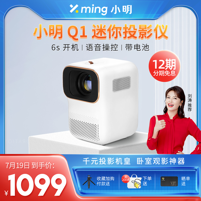 【刘涛推荐】小明Q1迷你投影仪家用投墙卧室4k超高清1080P宿舍小型便携投影手机一体机内置小爱同学热门设计联盟服务商
