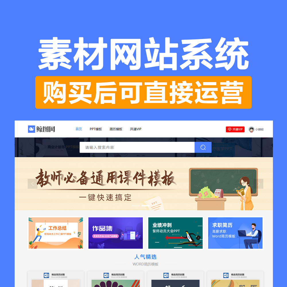 素材网站源码系统带演示数据会员下载ppt模板word简历原创更新热门设计联盟服务商