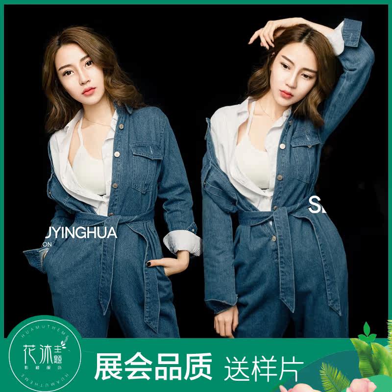 新款影楼主题服装时尚个性感牛仔连体衣艺术照拍照摄影服饰热门设计联盟服务商
