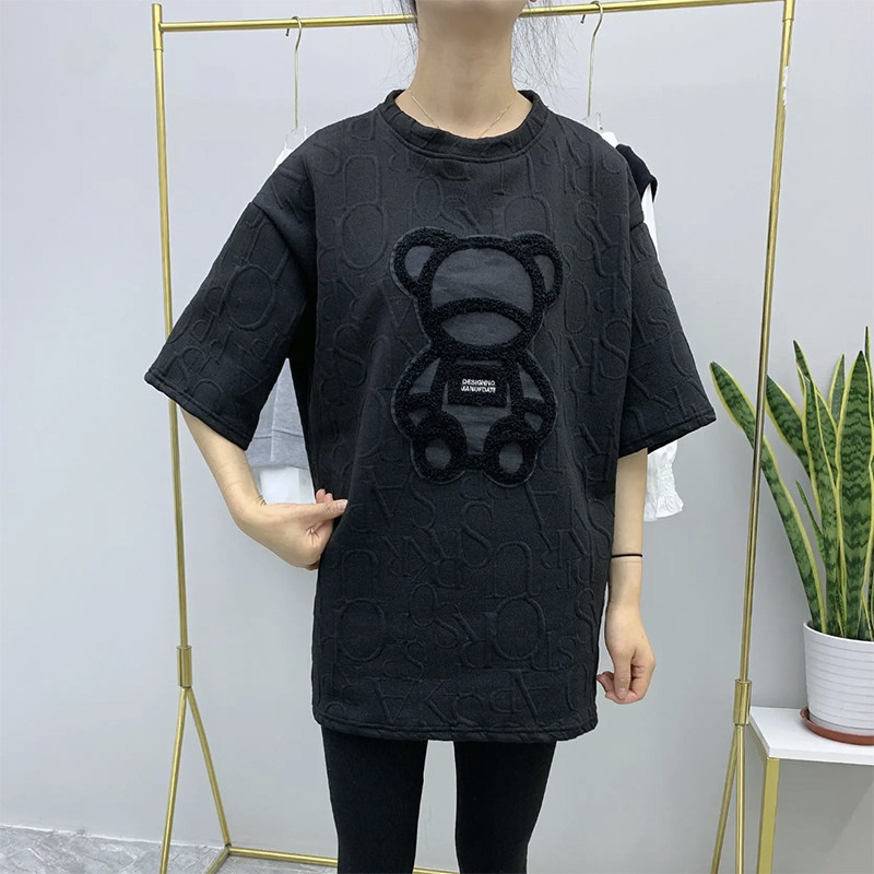 康沈服饰2021新款宽松小熊设计感打底衫女装短袖内搭上衣t恤热门设计联盟服务商