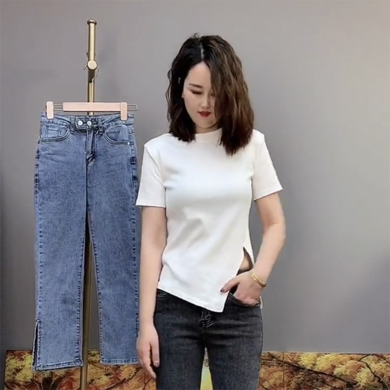 位玲服饰下摆开叉t恤女短袖2021新款不规则上衣内搭设计感打底衫热门设计联盟服务商