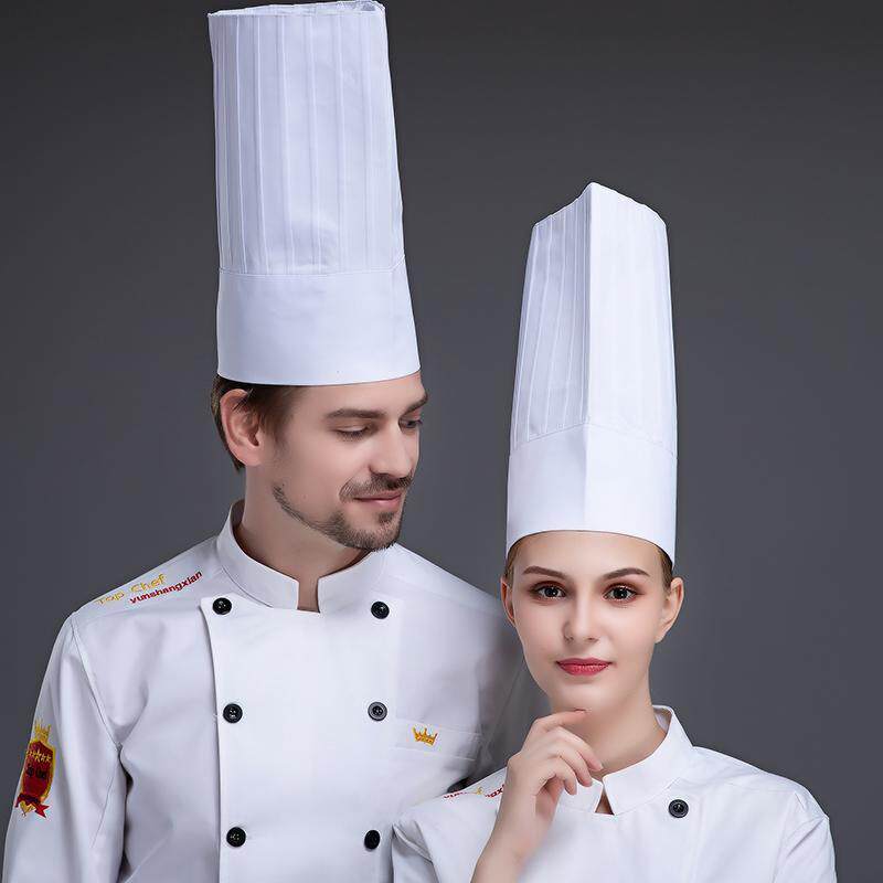 厨师工作帽高顶可清洗防油烟布帽酒店餐饮烘焙师透气白色工作帽子热门设计联盟服务商