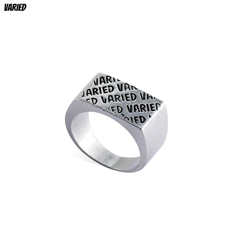 VARIED 小众设计做旧感幕满印LOGO金属材质戒指 不掉色 指环热门设计联盟服务商