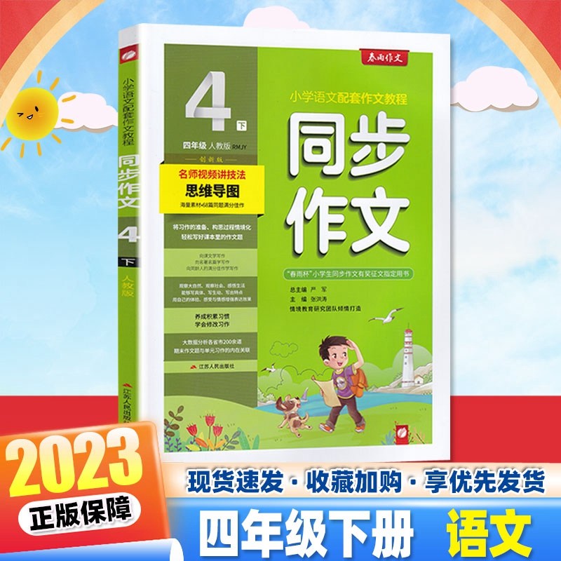 2023春雨教育小学四年级同步作文下册人教部编版RJ 通用4年级下语文作文教材同步训练习辅导资料作文有奖征文素材写作专项训练范文热门设计联盟服务商