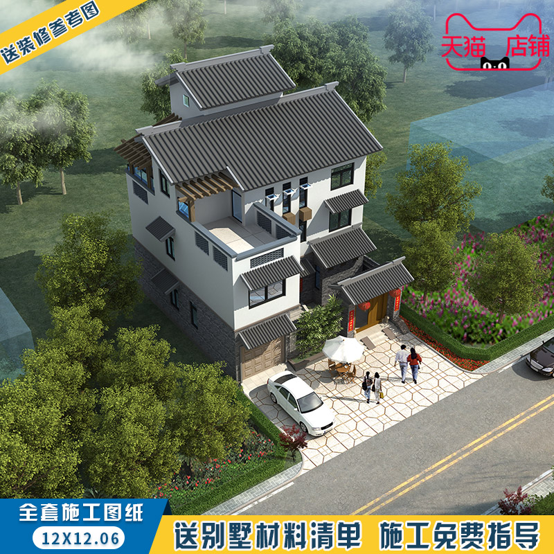 新中式别墅设计图纸带车库二层半农村房自建房设计图纸全套施工图热门设计联盟服务商