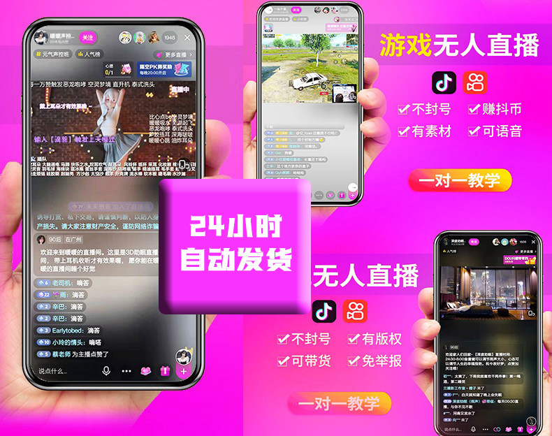 抖音无人直播素材教程手机卡直播广场技术录屏视频软件直播间带货热门设计联盟服务商