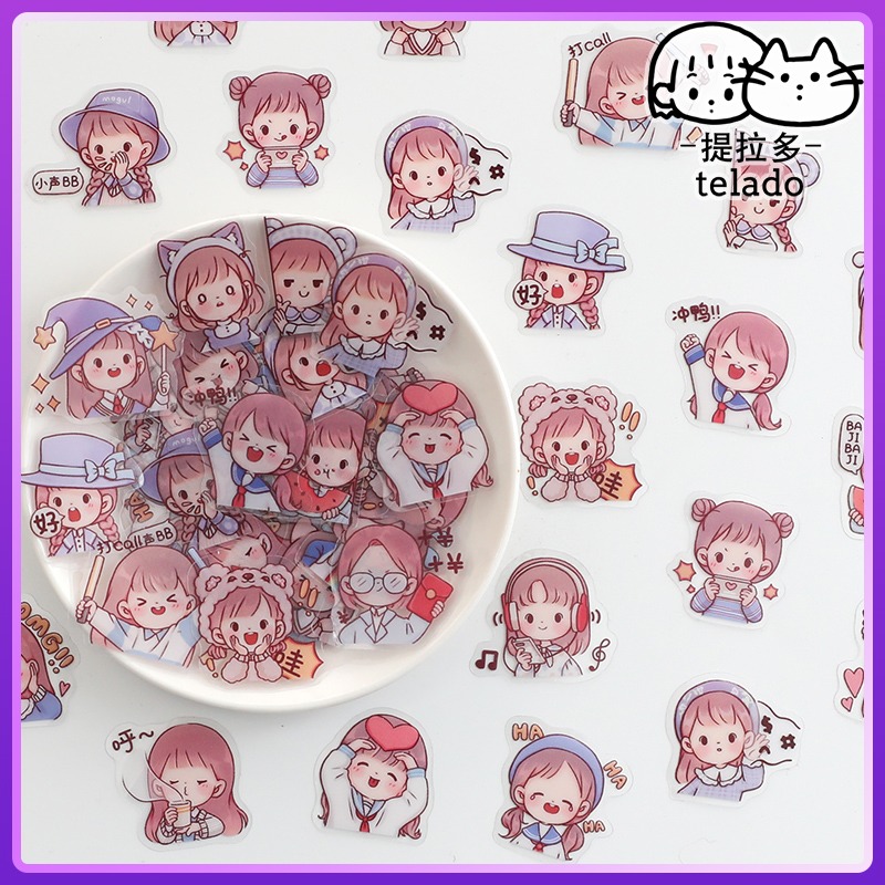 有控 可爱小女生头像贴纸 卡通防水女孩Q版表情贴手帐拼贴装饰贴热门设计联盟服务商