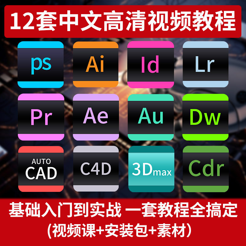 ps平面Ai广告Ae立体3Dmax室内c4d影视pr音频Au设计软件视频教程热门设计联盟服务商