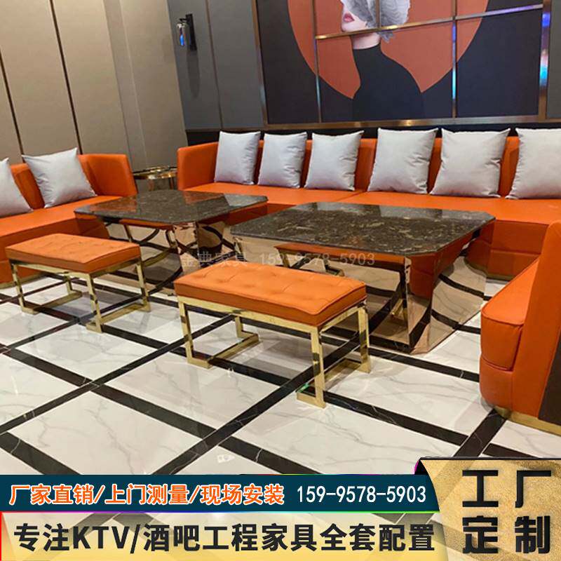 KTV酒吧茶几沙发组合清吧会所卡座包厢不锈钢大理石桌子吧台定制热门设计联盟服务商
