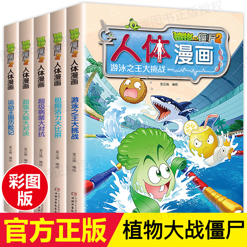 植物大战僵尸漫画书 全套5册 人体漫画全集 小学二年级四年级二儿童7-10岁最新恐龙机器人搞笑版的书籍植物大战僵尸书2热门设计联盟服务商