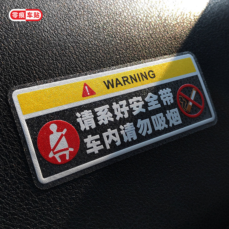 请系好安全带车贴汽车夜光提示标志车内禁止吸烟贴纸中控台贴画热门设计联盟服务商