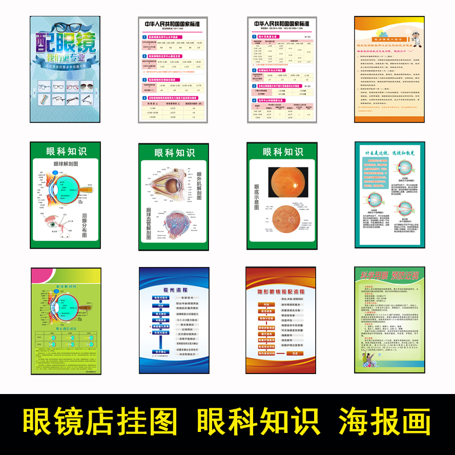 眼镜店眼科知识眼球结构图验光加工流程宣传挂图装饰贴画海报